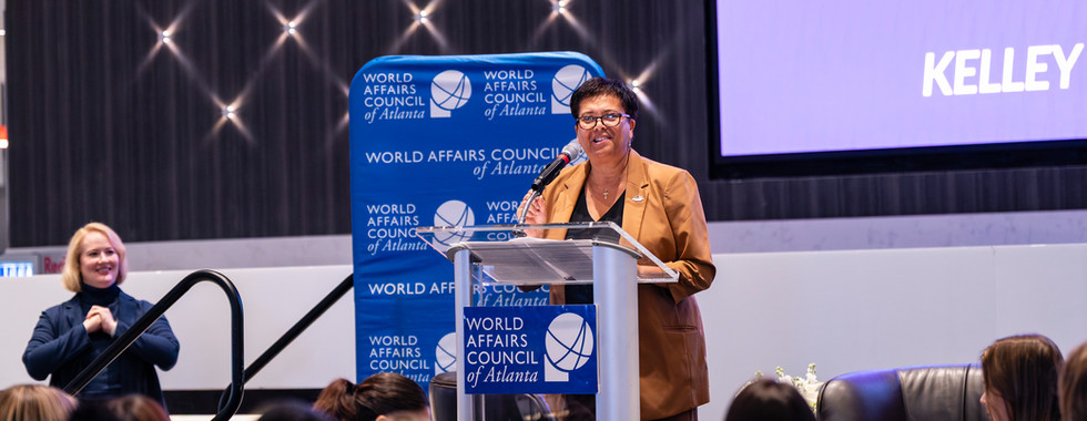 The World Affairs Council of Atlanta welcomed more than 300 members of Atlanta’s business, civic, and diplomatic communities on March 6 for its annual International Women’s Day celebration, presented by Bank of America with additional support from UPS. This year’s program, featuring two‑time FIFA World Cup Champion and Olympic Gold Medalist Kelley O’Hara, was held at the Mercedes‑Benz Club at Mercedes‑Benz Stadium.